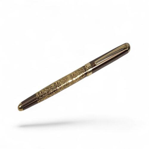 Brown Color Body With Gold Clip Flower Design Cap type Ball Pen