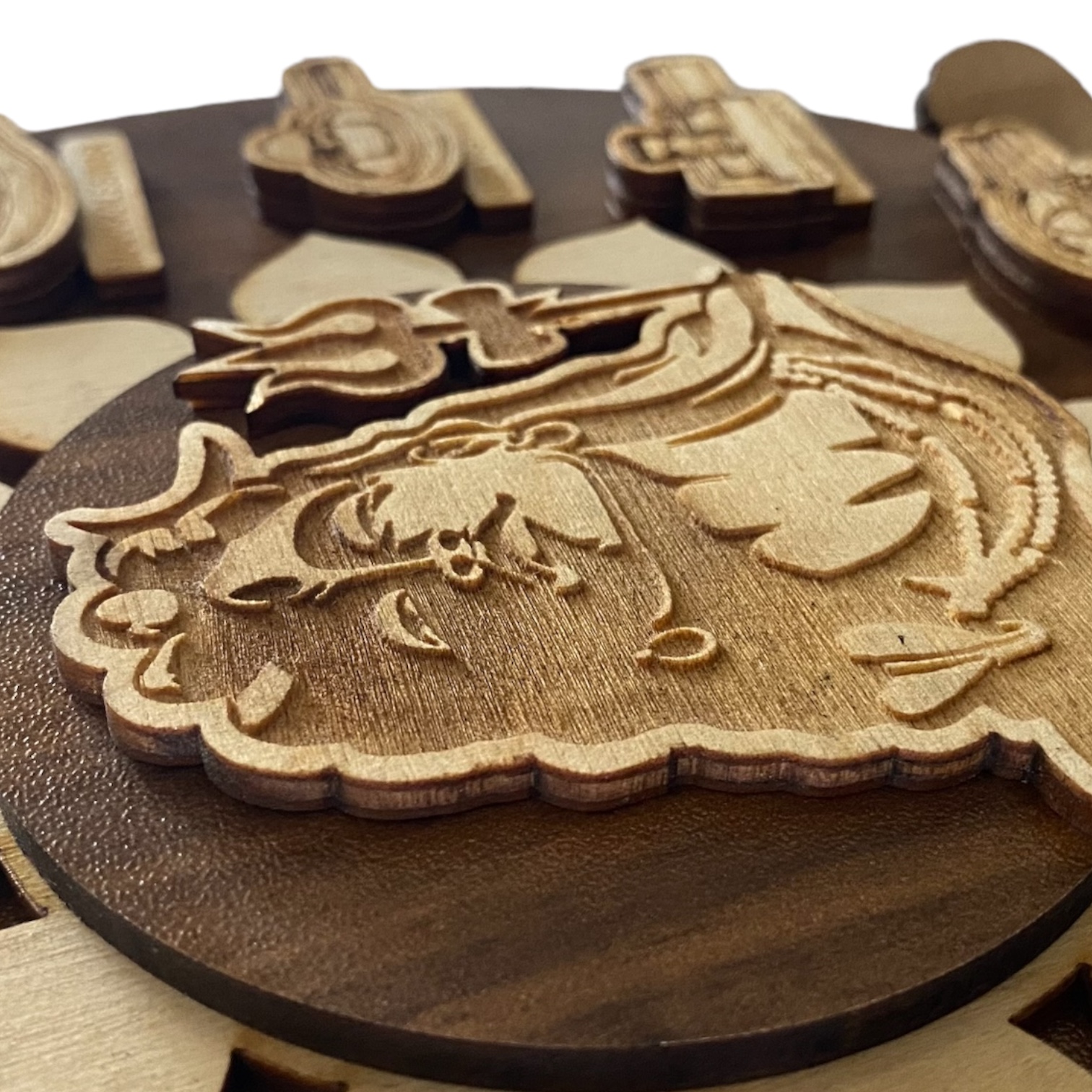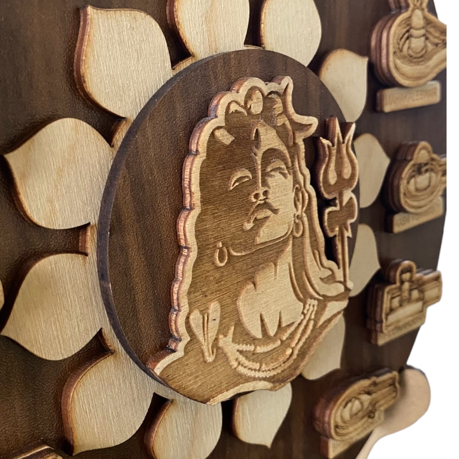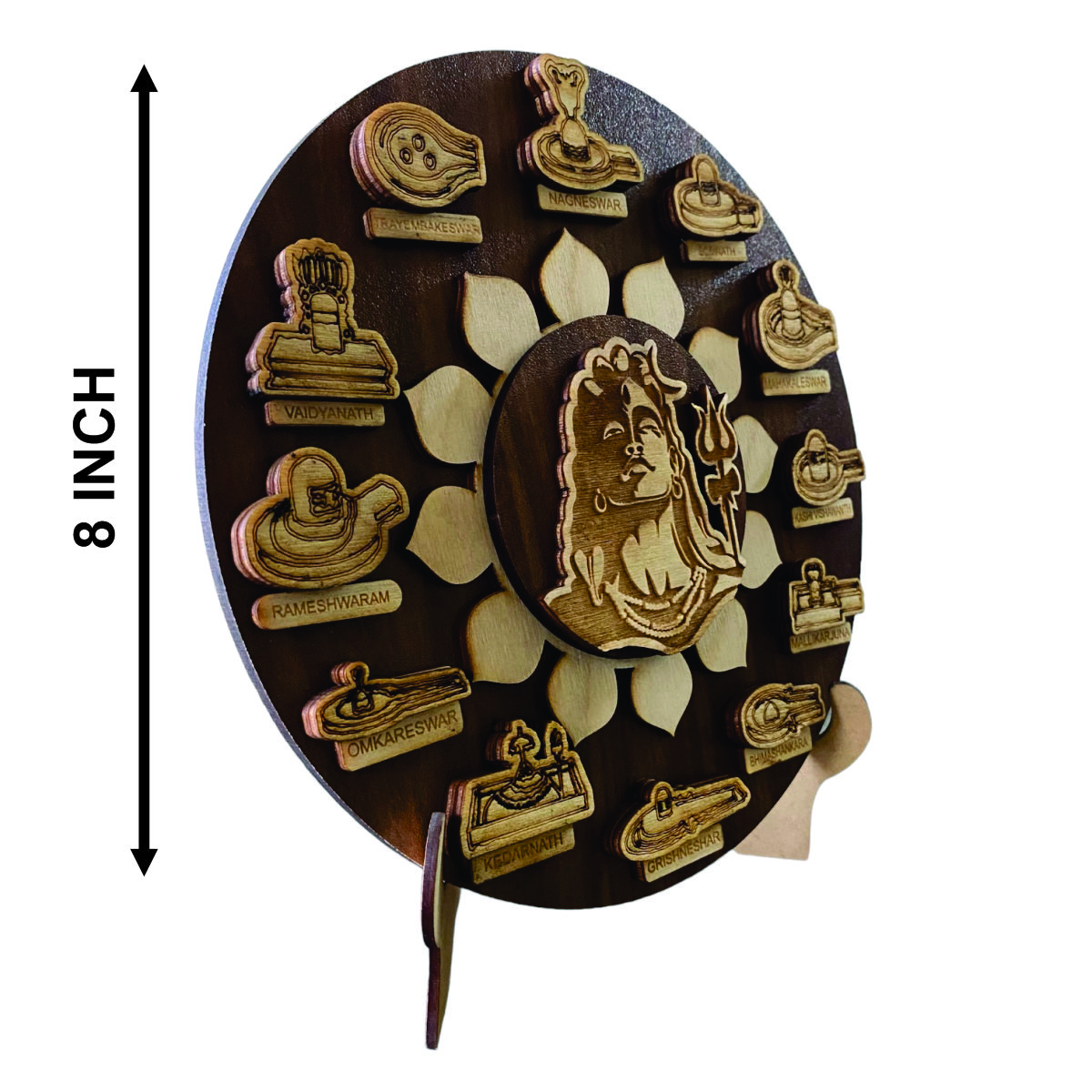 - About Frame : The frame consists of three layers. The first layer is a 5mm wooden base. The second layer is a wooden plate engraved with the 12 Jyotirlingas and the sacred chant ‘OM Namah.’ The last layer features an engraved plate depicting Lord Shiva.