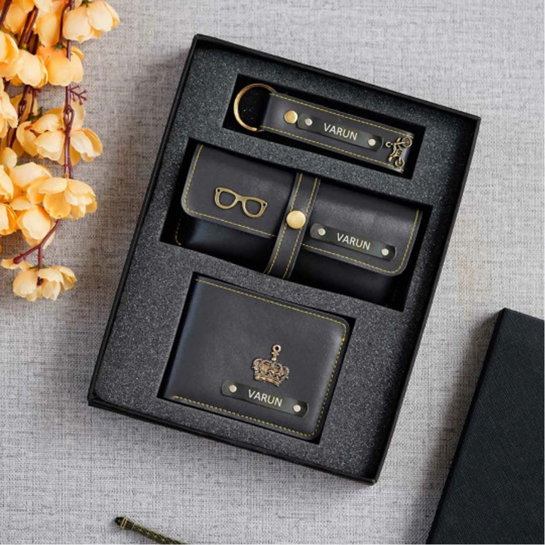 Faux Leather 3 in 1 wallet Set – Black