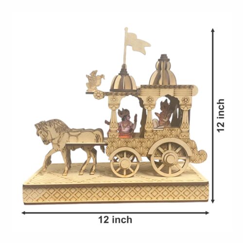 Krishna Arjuna Rath, MDF Spiritual Decor With Wooden Gift Box, 12 x 6 x 12 Inch, Ideal For Gifting And Home Decor