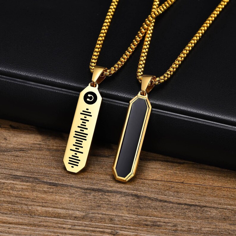 Octagon Golden Pendant With Song Code On The Back, Black And Gold Custom Laser Engraved Necklace, Spotify QR Code Pendant