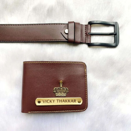 Personalized Gift For Boys – Faux Leather Wallet And Belt Combo – Birthday Combo For Men – Brown