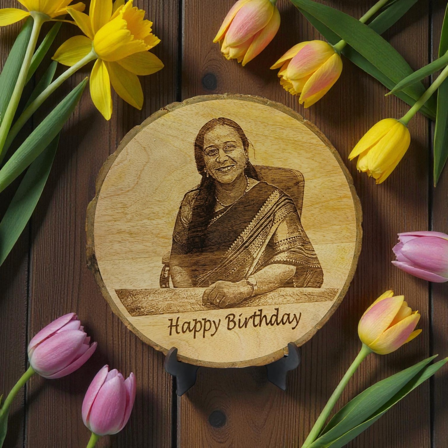 Bring a touch of rustic elegance to your home with this Personalized Natural Wooden Slice Photo Frame. Crafted from real, sustainably sourced wood, each slice showcases its own unique grain patterns, bark edges, and natural texture—making every piece truly one of a kind.