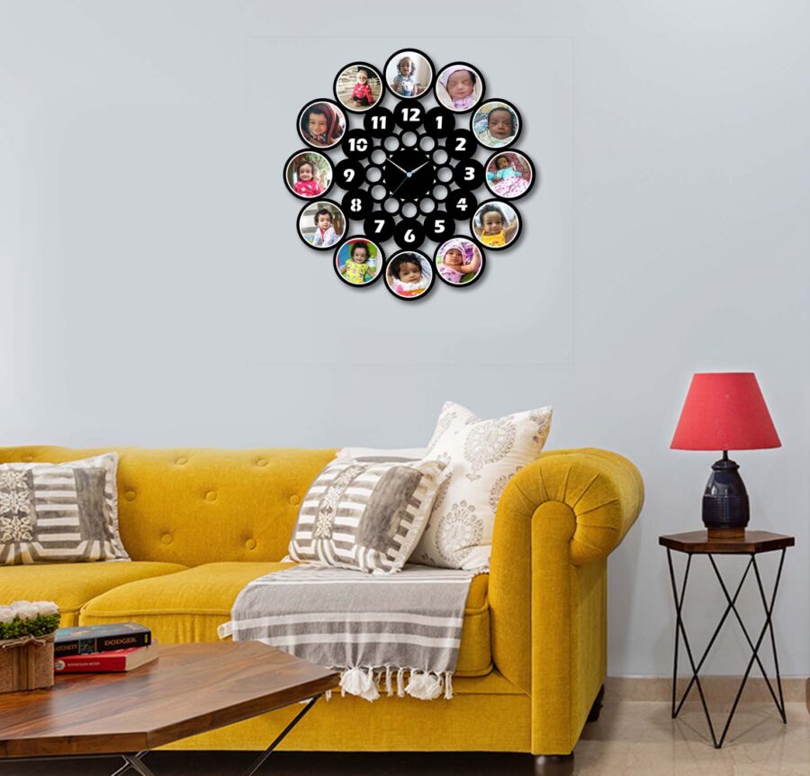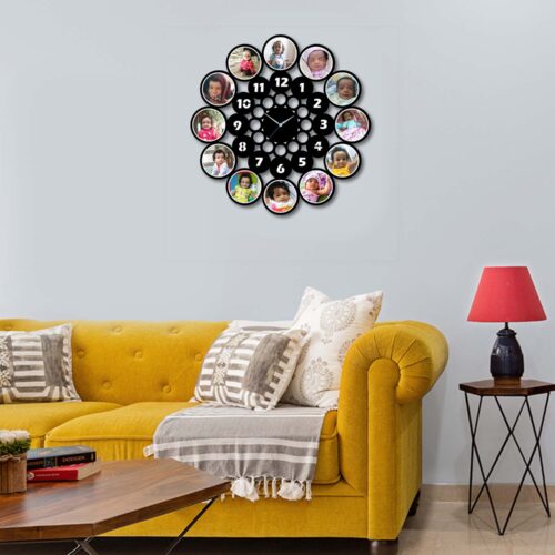 Personalized Wooden Wall Clock with 12 Photos – CL-0003 (15 X 15)