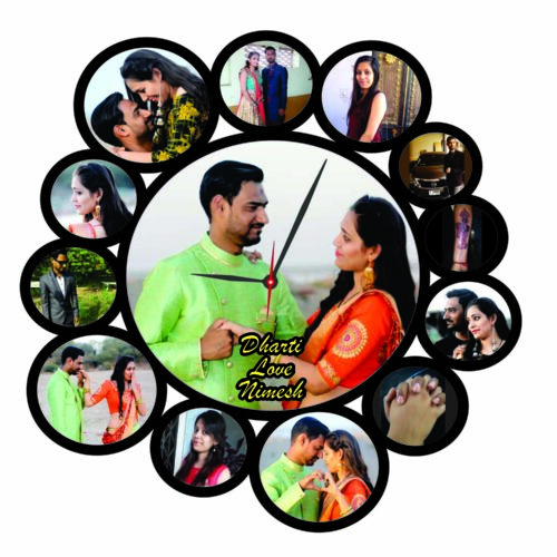 Personalized Wooden Wall Clock with 13 Photos – CL-0004