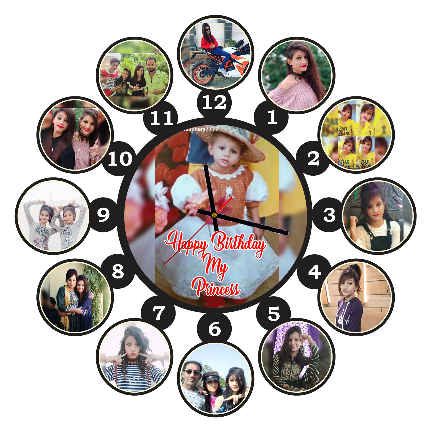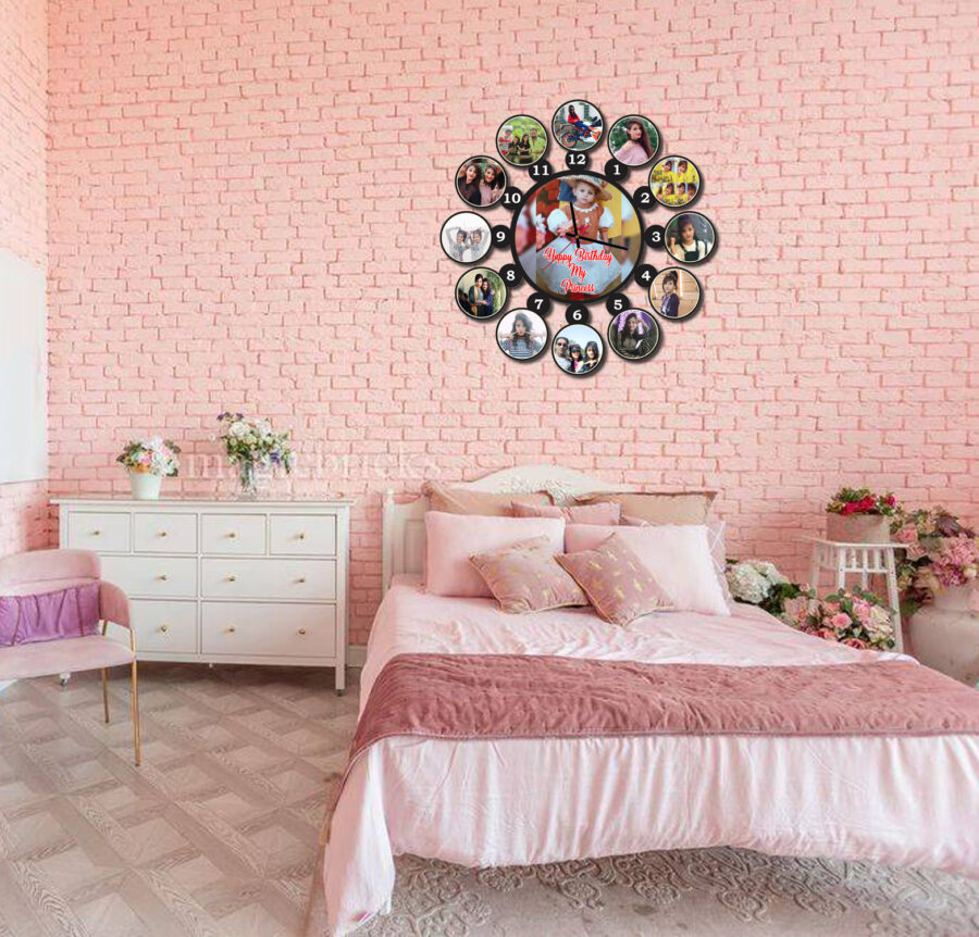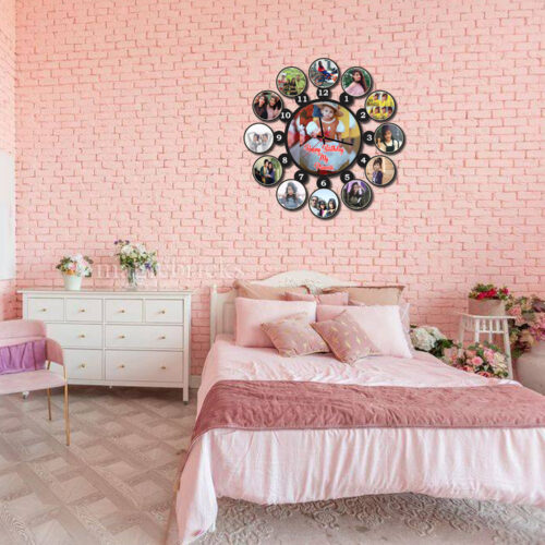 Personalized Wooden Wall Clock with 13 Photos – CL-0005 (15 X 15)