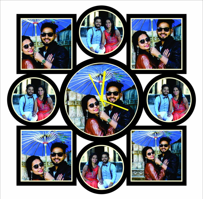 Personalized Wooden Wall Clock with 9 Photos – CL-0008 (Size – 15 x 15)