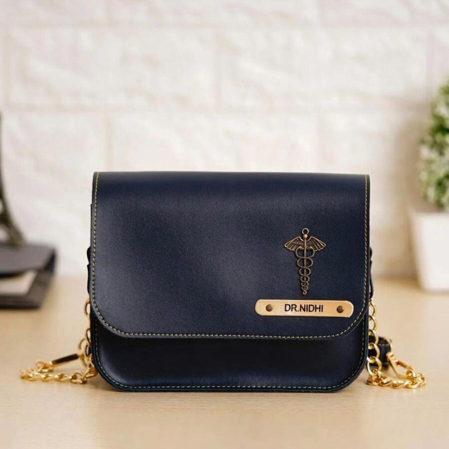 Tan Women Sling Bag Customised Name Sling Bag – blue